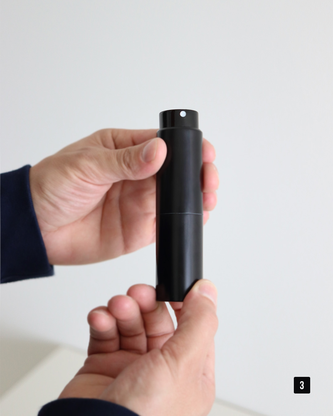 3. Tournez le Parfum Case dans le sens des aiguilles d'une montre pour tirer la tête de pulvérisation vers le haut. Pour le tirer vers le bas, tournez l'étui à parfum dans le sens inverse des aiguilles d'une montre.