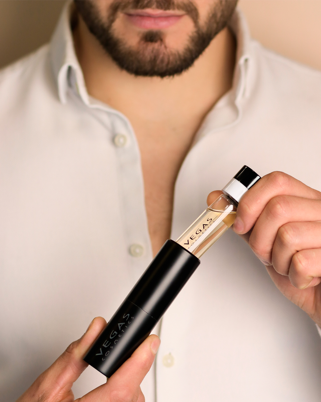 Vegas Twist Black Pack (Ref. 108) est un concept portable, innovant et polyvalent. Il se compose d'un spray « Parfum Case ». Et pour une recharge d'Extrait de Parfum* concentré à 25% de l'essence.